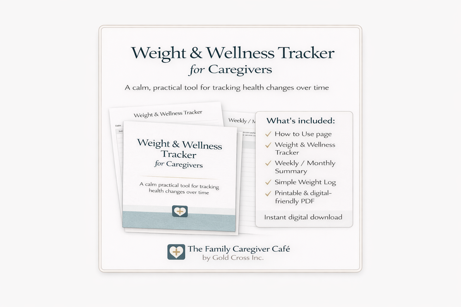 Designed for caregivers, this Weight & Wellness Tracker helps you monitor weight changes over time while capturing meaningful context like appetite, energy, illness, or medication adjustments. It offers a clear, organized way to prepare for appointments and feel more confident sharing observations with healthcare providers.